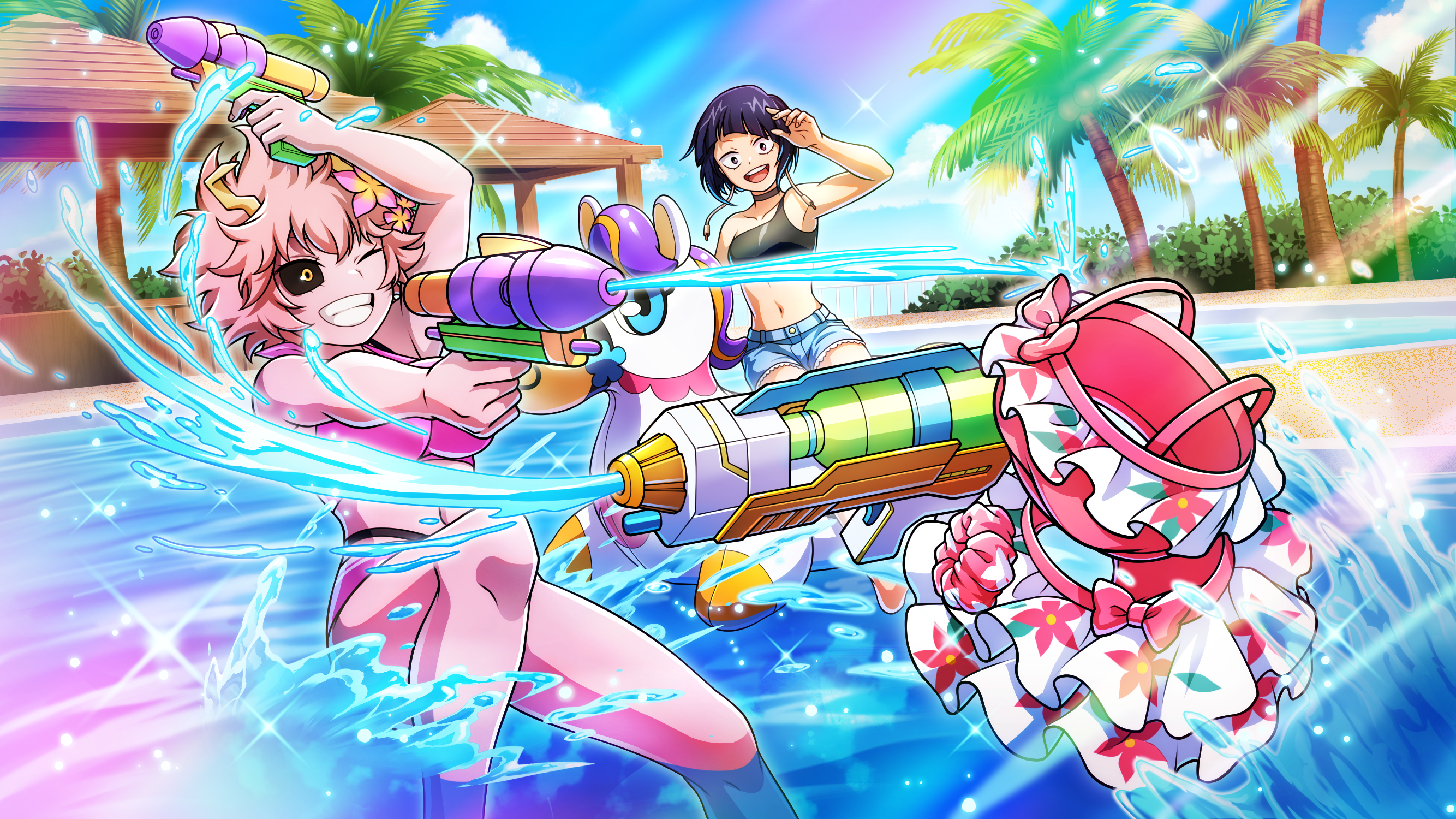 現在開催中の「勝ち取れスイーツ食べ放題ステップアップガシャ」では、夏の季節に合わせ水着で大はしゃぎする特別な芦戸三奈が登場しております!